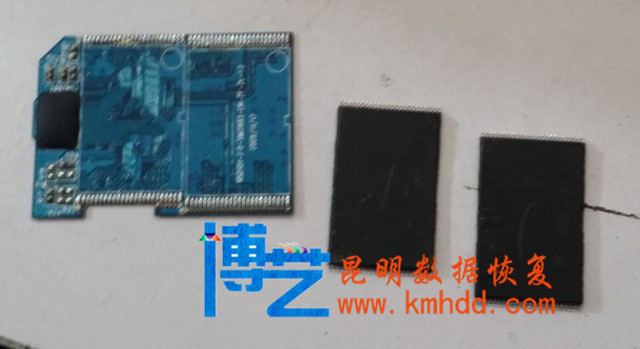 恢复过程: 接卡后,工程师首先对存储芯片目测有无折断,如果存储芯片被折断的话基本上数据就无法恢复,存储芯片为2个,一个
