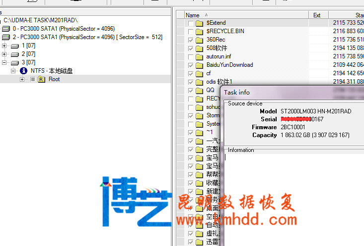 恢复过程:这块盘是一块三星代工的,写的是希捷的标。容量为2T,故障表现为插上电脑有时能识别到,但一点盘符就出现电脑假死,拔掉硬盘后电脑恢复正常。后送修到我们公司后,经工程师检测发现盘内有大量坏道,进一步测试确定4号磁头是坏的,此盘为6个头,如果要数据全部完整恢复必须得换磁头,但这种盘较新,配件较昂贵。客人也不接受价格,就让我们将另外5个好头的数据想办法恢复出来。我们为盘做磁头分头操作,将4号头关掉,经过6小时镜像完成。拉下来将数据考到好盘里,经过验证数据恢复率85% 耗时12小时。