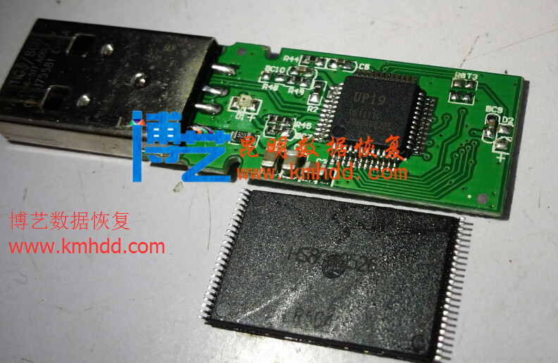 恢复过程:工程师接到U盘后,插上电脑无法识别,随拆开外壳,发现主控为UP19的芯片,并伴有轻微发烫,这种情况下,一般为主控芯片损坏或者主控芯片内部的固件丢失,但不能更换芯片或者更新固件(量产)。随后工程师将存储芯片拆下是为一颗东芝的颗粒,双通道4(2*4=8G),通过35分钟的等待,芯片数据读取完成。这个芯片的ID和LAYOUT还算好计算,而且以前我们也保存过此类算法。直接导入后秒秒钟数据便能看见,并且全部为绿色状态。表示数据全部OK. 点SAVE全部保存。数据恢复率100%。耗时1小时。
